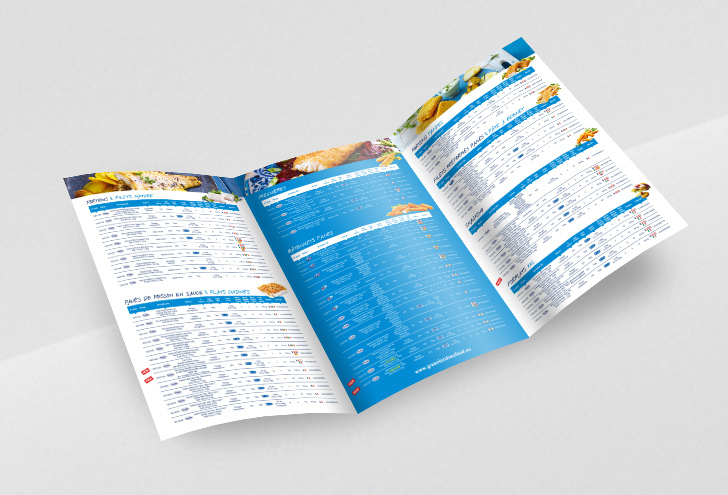 Deux impératifs pour cette plaquette produits : valoriser une offre riche de produits surgelés de la mer tout en garantissant une navigation intuitive.